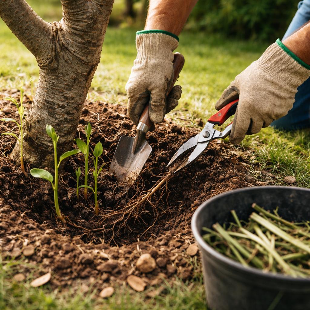 Самая распространённая ошибка — регулярное срезание поросли у поверхности земли. Визуально участок становится аккуратным, но корневая система получает сигнал к ещё более активному образованию побегов. Срез стимулирует пробуждение новых почек, и через несколько недель поросли становится больше, чем было.